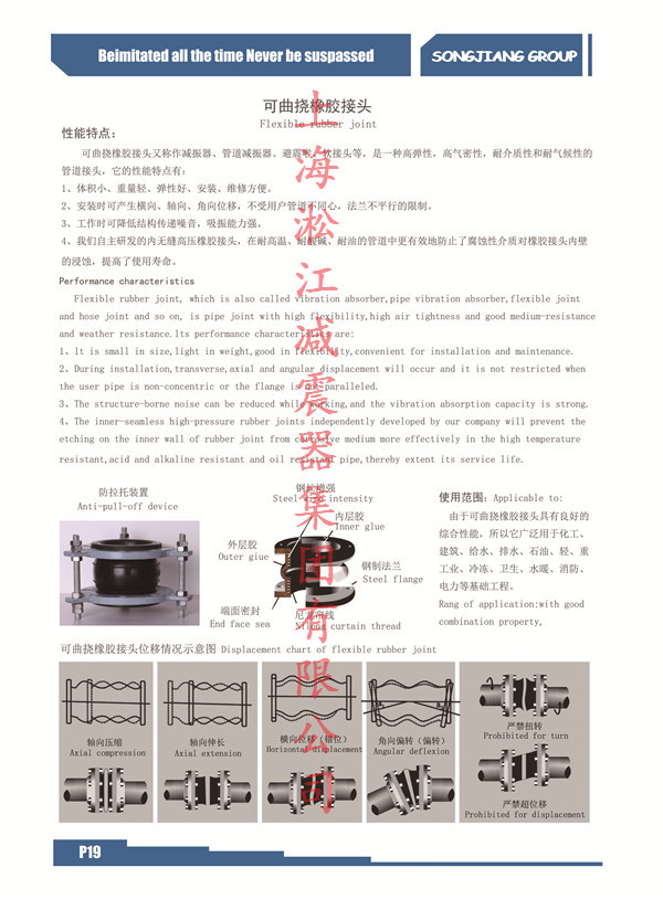 而淞江集團已經在慢慢注意這些用戶體驗,本文為大家帶來的就是可曲撓橡膠接頭:防拉脫裝置圖、內部構造剖面圖、位移情況示意圖、使用范圍簡介。